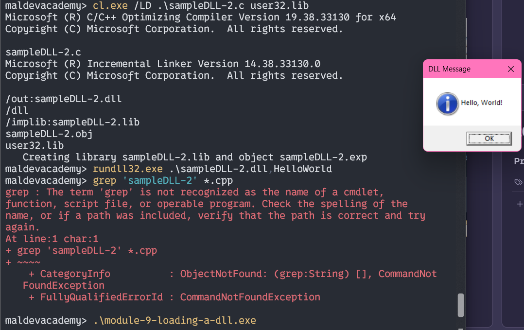 cl.exe /LD .\sampleDLL2-.c user32.lib